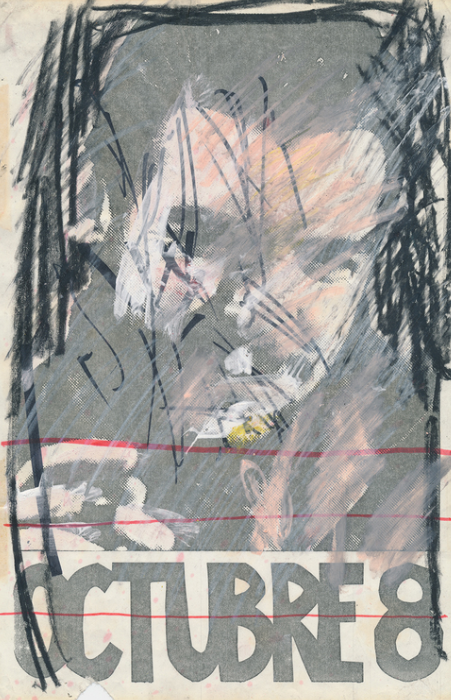 No hay un registro exacto del año en que la Agrupación de Plásticos Jóvenes realizó este trabajo, pero muy probablemente fue en la segunda mitad del año 86. Es parte de un proyecto de intervención entre miembros del colectivo, que consistió en que cada uno aportaba una imagen para ser fotocopiada y repartida entre los otros miembros, a condición de que fuera intervenida por quienes la recibían. Se entregaron cerca de 40 originales y cada uno debía intervenir, a lo menos, los 39 restantes, ofrecidos por los otros miembros. Las únicas restricciones de los originales era que fuesen en blanco y negro y en tamaño oficio para posibilitar las copias. La única restricción de las intervenciones, por su parte, era que no excedieran el tamaño del original.